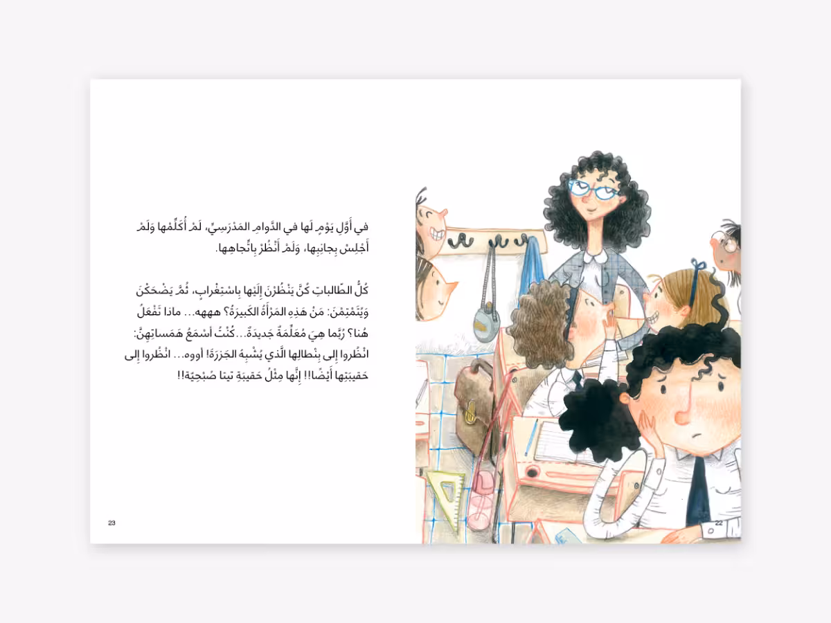 When Noura’s mother decides to join her English class to improve her language skills Noura is shocked and aghast at having her mother with her in the same class. Noura is sure that Mothers should never be in the same class as their daughters. As time goes on Noura finds out that it may not be all bad to have her mother with her in class.