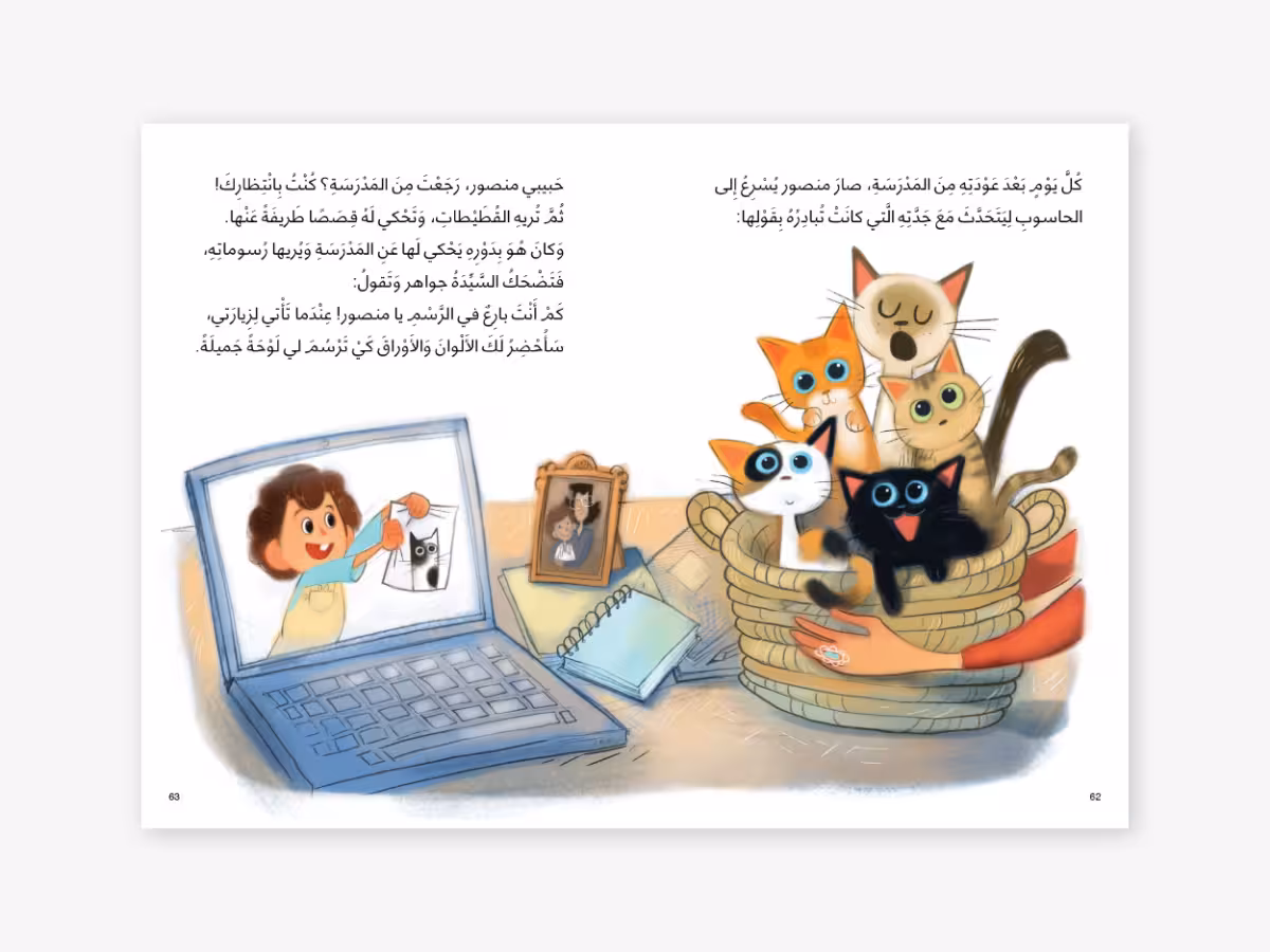 Mrs. Jawaher- The lady who loves cats- is a story about families and relationships. Many families nowadays live miles apart because of work or study. Whereas it is easy for Grandparents to bond with their grandchildren when they live in the same place. It is another story completely when they live far away from each other.
