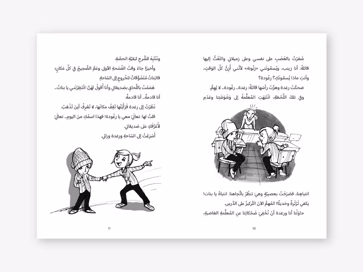 When Raghda reveals the reason for the hat the girls are contrite and become more accepting and understanding .Zainab becomes Raghda’s best friend with whom she shares her joys and pain. Raghda and Zainab spend a lot of time together sometimes joined by Raghda’s brother Salem.
