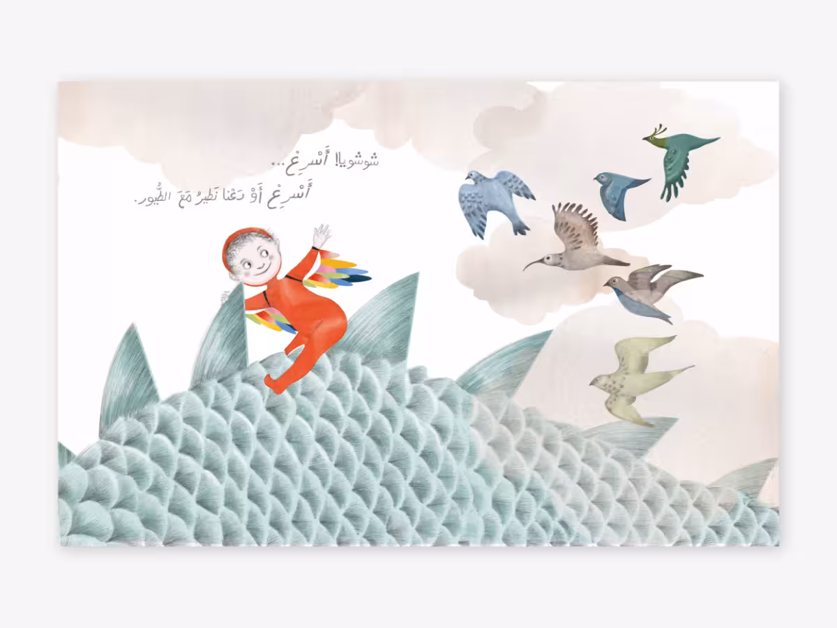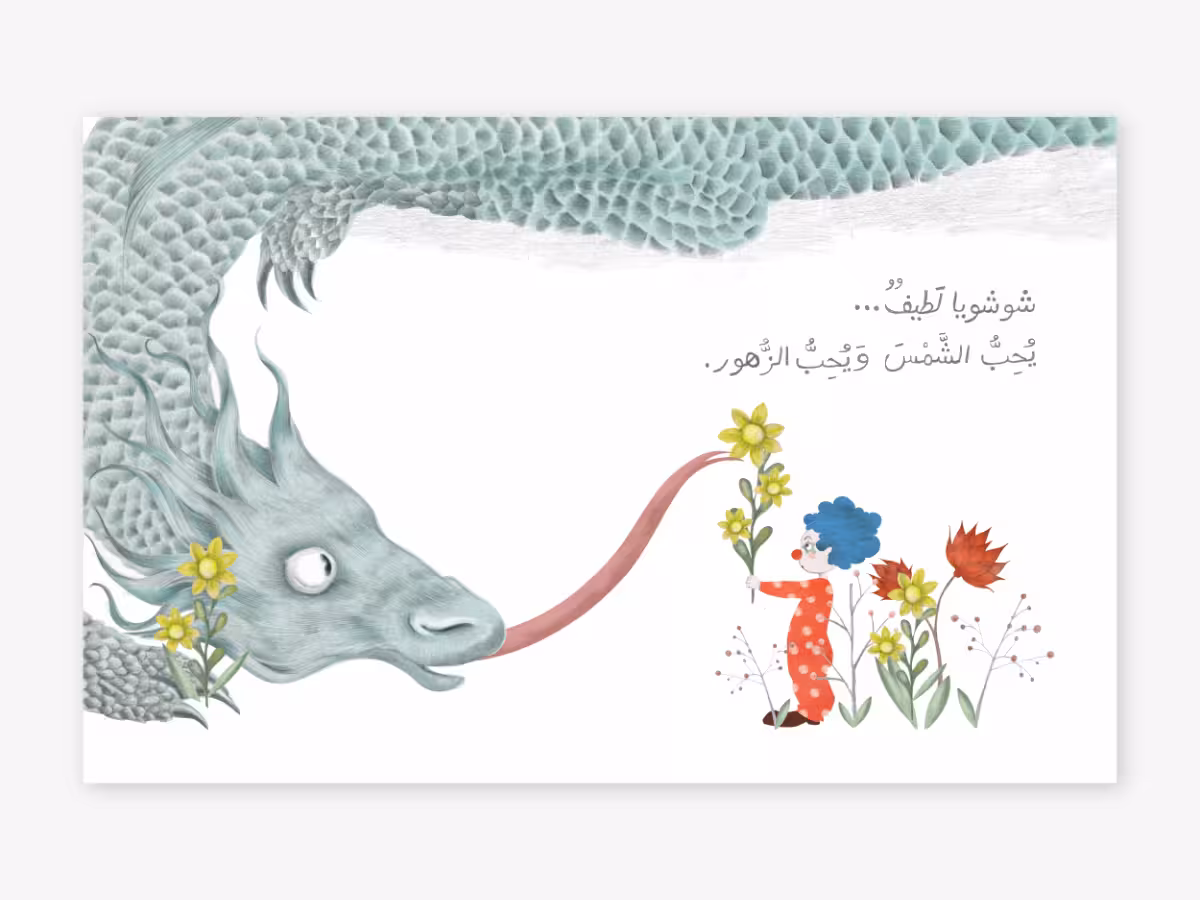 Shushuya is a story about a little child who has an imaginary friend in the shape of a friendly dragon. The child has a great time with the dragon who takes him from one imaginary trip to another. When it is bedtime the child reader discovers that the dragon is a small cuddly dragon stuffed toy.